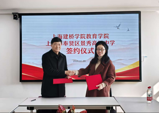 为深入贯彻落实党建引领教育高质量发展理念,凝聚校校协同育人共识,拓宽优质生源储备渠道,搭建学子成长成才桥梁,在体育教学部前期扎实推进下,2026年1月9日,教育学院院长陈苏婷带队一行6人赴上海市奉贤区景秀高级中学,成功开展党建联建签约暨招生宣讲系列活动。