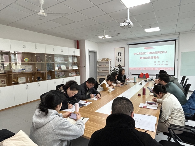 2026 年 3 月 16 日,教育学院党总支于学院 219 会议室召开树立和践行正确政绩观学习教育动员部署会。会议由教育学院党总支书记周荣玲主持,院长陈苏婷、党总支副书记李奕璇、副院长杨洁、体育部主任钟涛等领导班子成员、学院党总支委员及各党支部书记参加会议。会议深入传达学习上级及学校党委关于树立和践行正确政绩观学习教育的系列部署要求,强调强化政治自觉,切实以正确政绩观引领学院各项事业高质量发展重要内涵。