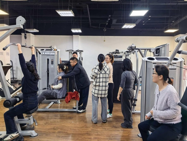 4月2日同一时段,体育馆119,李传雷副教授与马亮副教授联袂主讲的“健身入门指导”课程接续展开。面对教职工对科学健身的迫切需求与知识盲区,两位党员教师从基础理论扫盲入手,详细讲解肌肉功能、器械安全、动作原理,并现场示范指导高位下拉,蝴蝶机夹胸,飞燕挺等经典动作,帮助老师们建立科学训练框架。“动作质量优于数量,感受发力是关键”的叮嘱,体现了专业与责任。课程不仅传授技能,更致力于破除误区,引导安全、有效、可持续的健身习惯养成。